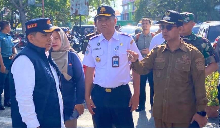 Kepala Dinas Perhubungan Kabupaten Karimun bersama Bupati Karimun dan Forkopimda saat melakukan peninjauan arus mudik di sejumlah titik strategis pada H-5 menjelang Hari Raya Idul Fitri 1447 Hijriah di Kabupaten Karimun. (official/segantanglada.id)