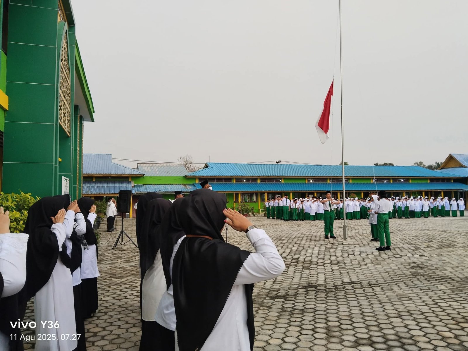 Endang Eryani S.Pd juga menambahkan, Melihat keadaan cuaca, namun demikian, tidak mengurungkan dan tidak menjadi kendala kelancaran pelaksanaan upacara. Seluruh guru dan pegawai serta seluruh siswa tetap khidmat dan semangat mengukuti jalannya proses upacara.