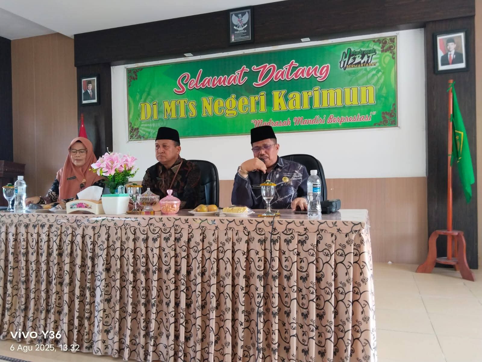 Pelaksanaan Pembinaan bidang pendidikan bersama Kepala Kantor Kemenag Karimun,Kanwil Kemenag Provinsi Kepulauan Riau dan di Ruang Aula MTsN Karimun, pada Rabu (6/8).doc.