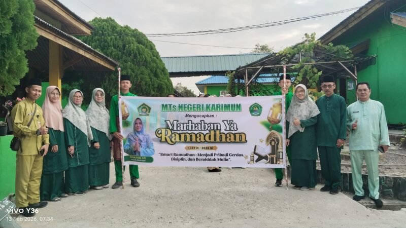 “Diikuti oleh seluruh guru dan staf serta seluruh siswa ikuti pawai semangat menyambut Ramadhan dengan , “ungkap Endang Eryani, S P.d. Daerah sekitar lingkungan MTsN Karimun, 13 Februari 2026