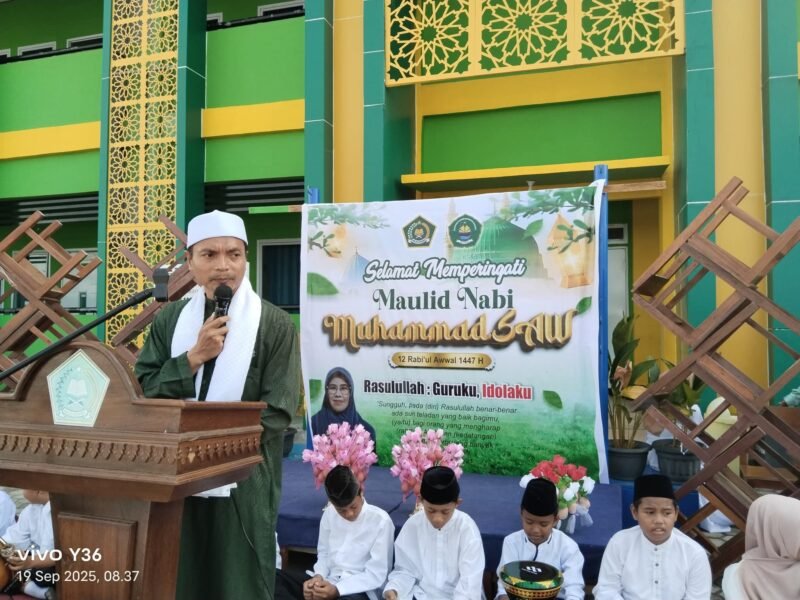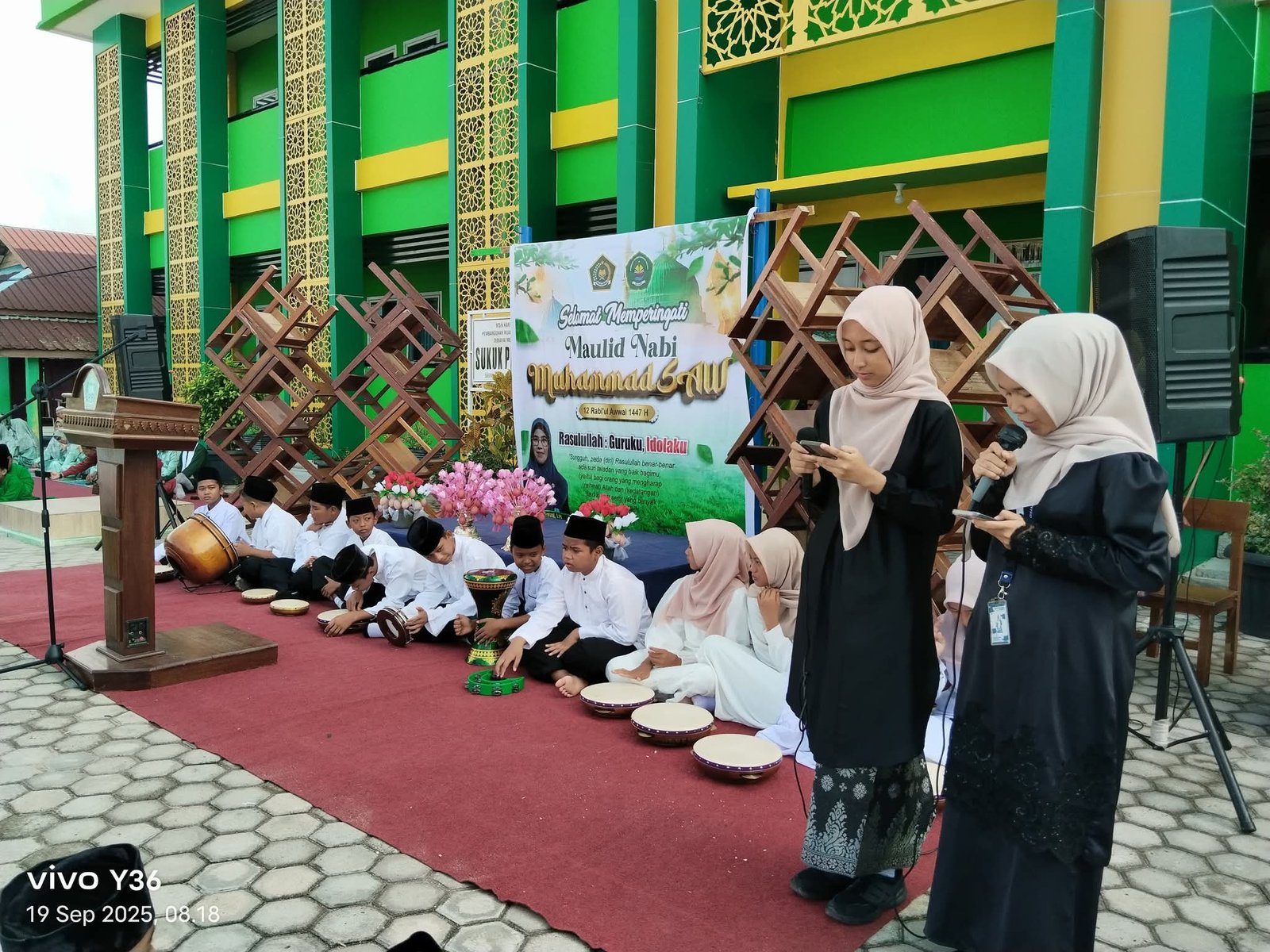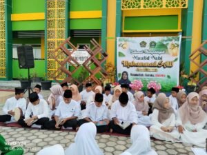 Karimun-Ceramah Ustadz Asep mewarnai puncak peringatan maulid Nabi Muhammad SAW, di Halaman MTsN Karimun, pada Jumaat (19/9).